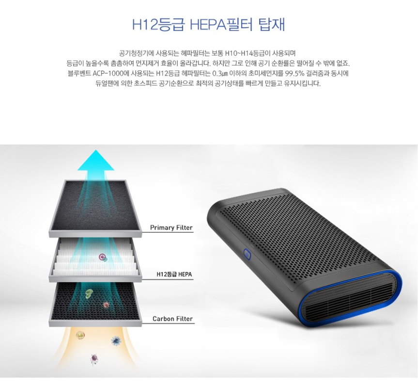 H12 등급 HEPA 3중 필터로 완벽한 정화.